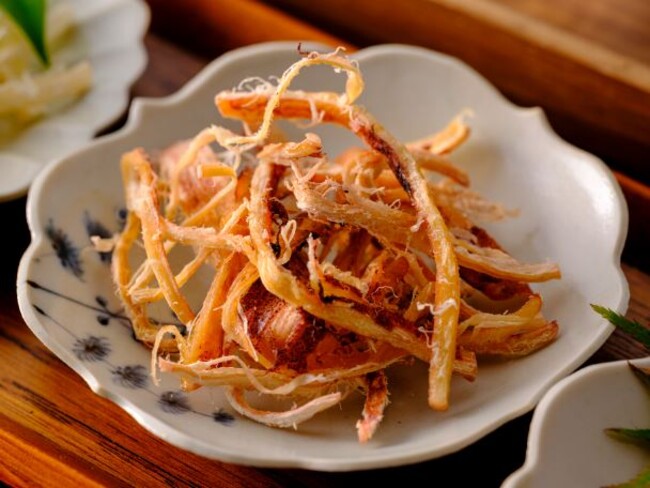 極上の手延べそばに加え、3種珍味の内容は、国産真いか(スルメイカ)を鉄板焼きしたあと、直火でさらに香ばしく仕上げた噛むほど味わいが広がる「焼きするめ」、国産真イカの表皮を丁寧に剥き、白く上品に仕上げ、ソフトな食感が魅力の「裂き烏賊」、国産ほたての貝ひもをバター醤油風味に仕上げたほんのり甘みが後を引く「ほたて貝ひも」のセットです。