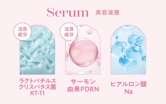 ※1 整肌成分:乳酸桿菌、※2 保湿成分、※3 整肌成分:DNA-Na、※4 整肌成分、※5 整肌成分、※6 整肌成分、※7 整肌成分、※8 整肌成分