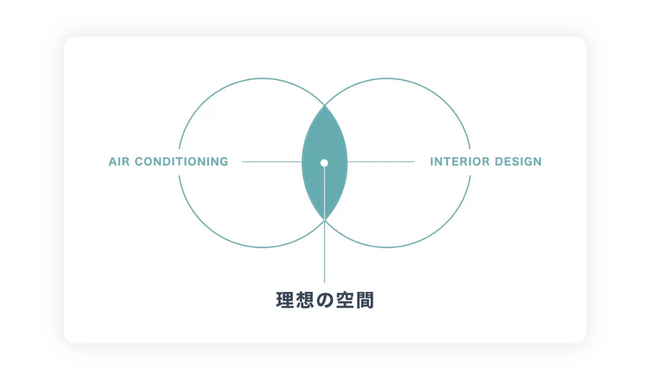 ■空間・空気をデザインするReAirが創り出す「理想の空間」は、空調・換気設備と設計・デザインの双方が両立できて初めて実現するものと捉え、空間デザインでは、空間をどのように使用するかという「用途」から、最適な空気の流れを考えたオーダーメイドの内装設計を行います。