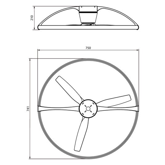 商品全高210mmの超薄型設計によって、天井高の低い日本住宅にも設置しやすいコンパクトなサイズを実現。器具の幅もΦ750mmとリビングやダイニング、寝室、キッチンにも取り付けやすいサイズに仕上がっています。