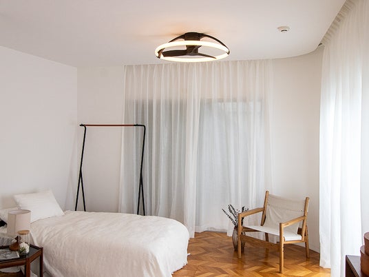 一方でMistral(ミストラル)は、シンプルかつコンパクトなデザインと明るさを両立していることから、シーリングファンライトの設置を諦めていた、または考えてすらいなかった部屋でもご利用いただけます。