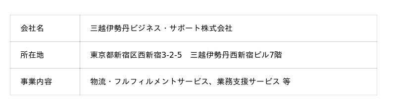 株式会社三越伊勢丹ビジネス・サポート株式会社三越伊勢丹ビジネス・サポートは、三越伊勢丹グループで長年培ったノウハウとリソースで、高品質なロジスティクスサービスをさまざまな企業さまに提供しております。