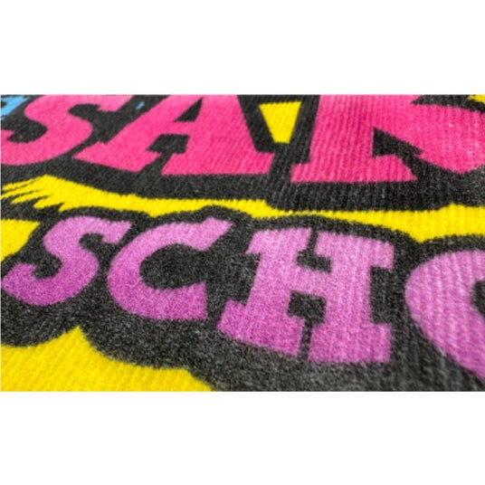 加工方法:インクに熱をかけて気化させ、ポリエステル100%の生地に染み込ませる、なめらかな触り心地の仕上がりです。
