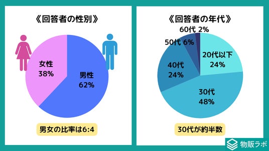 回答者の男女比はおおよそ6:4となりました。年代は30代が最も多く46.0%、次いで20代以下・40代が多くどちらも24.0%という結果になりました。