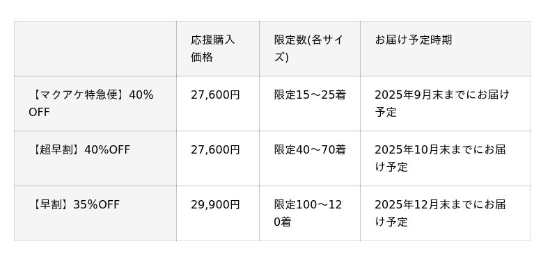 ■Makuake(マクアケ) 先行販売概要・プロジェクト期間2025年7月4日(金)11:00 ~ 2025年9月29日(月)22:00
