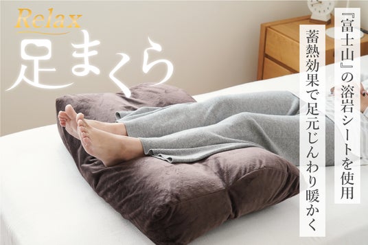 株式会社オファーがんばった足にホッとぬくもりを。睡眠中の”足活(あしかつ)”はじめませんか?日本の最高峰『富士山』の溶岩シートを採用。蓄熱効果で足元じんわり暖かく。頭寒足熱。心もほっとする足まくら。
