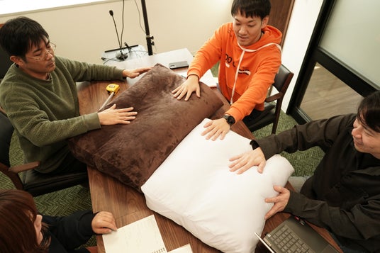 私たちの今までの経験・知見と、取り扱ってきた商品、つながりのあるメーカーさんとその技術力。様々な角度からアプローチを試み、たどり着いたのが、創業95年の寝具メーカーさんと協力し、