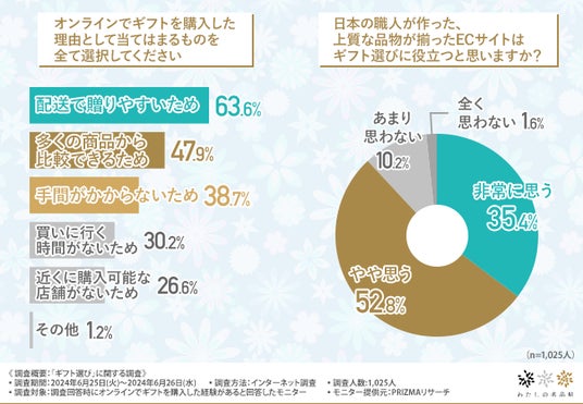 贈りやすく選択肢が多いためオンラインでの購入を選択!日本の職人が作った上質な品物が揃うECサイトがギフト選びに役立つと感じる方は約9割