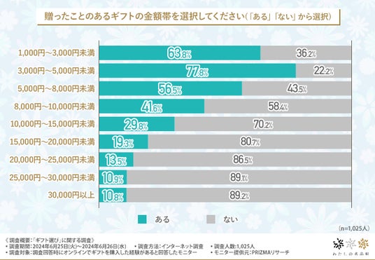 そこで、「贈ったことのあるギフトの金額帯を選択してください(「ある」「ない」から選択)」と質問したところ、