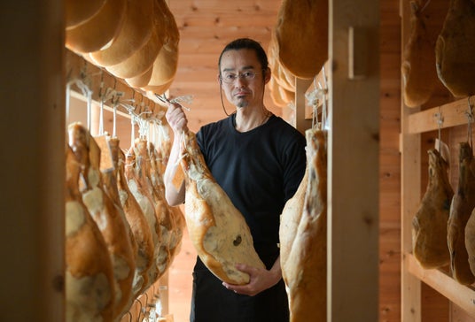 生産方法にも森本さんのこだわりがあります。一般的な生ハムは工場で温度・湿度を厳密に管理した環境で生産されますが、Prosciutteria Morimotoでは自然乾燥熟成にこだわり、八ヶ岳の冷涼な気候と澄んだ空気、そして季節ごとに変化する自然の風を活用しています。添加物を一切使わない完全無添加の生ハムであることも、大きな特徴のひとつです。