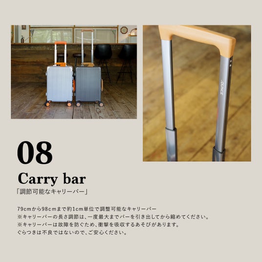 - 1cm単位で調整可能なキャリーバー(79cmから98cm)