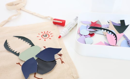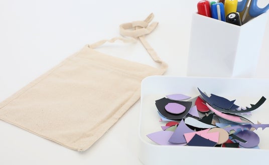 ランドセルの端材と全5色の専用ペンをお配りします。まずは制作見本を見ながら、お子さまと一緒にじっくり構成を考えてみてください。