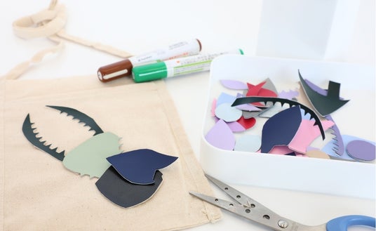 ある程度構成が定まったら、生地を貼っていきましょう。ご自身で切って生地の形を整えることもできます。 ※はさみのお取り扱いには十分にご注意ください。