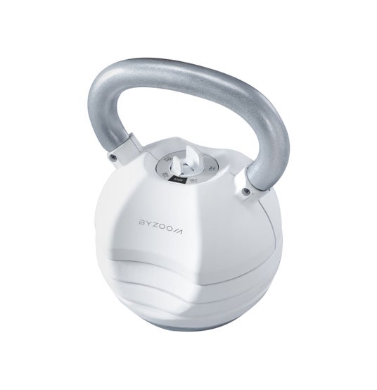 特徴:上部のつまみを回すだけで重量変更ができる可変式ケトルベルです。その機能性と美しいデザイン、そしてトレーニングを考えたフォルムは、より良いフィットネスライフを提供します。