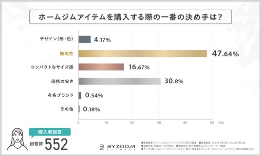 ホームフィットネスブランドとして世界中で愛される「アジャスタブルダンベル」をはじめとするホームジムグッズを取り扱う『BYZOOM FITNESS JAPAN』は、ホームジムグッズ購入者を対象に、ホームジムグッズの”購入の決め手や失敗経験”などに関する調査を実施しました。