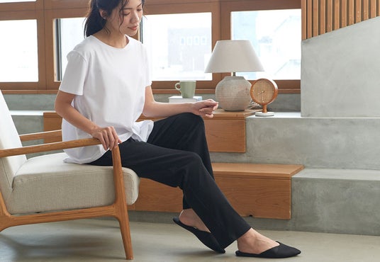 レギンスのように脚にぴったりフィットしていないので、脚の形が気になる方やよりリラックスして過ごしたい方にも。縦にラインの入ったリブ生地を使っているため、スタイルよく見えるのも嬉しいポイントです。