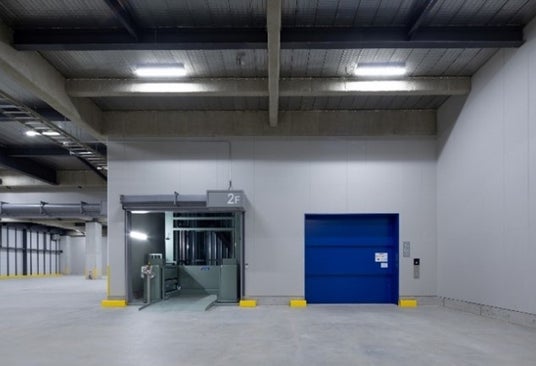 搬送設備:荷物用EV(3.5t)2基、乗用EV(15人乗)1基、垂直搬送機(1.5t)1基、(1t)1基