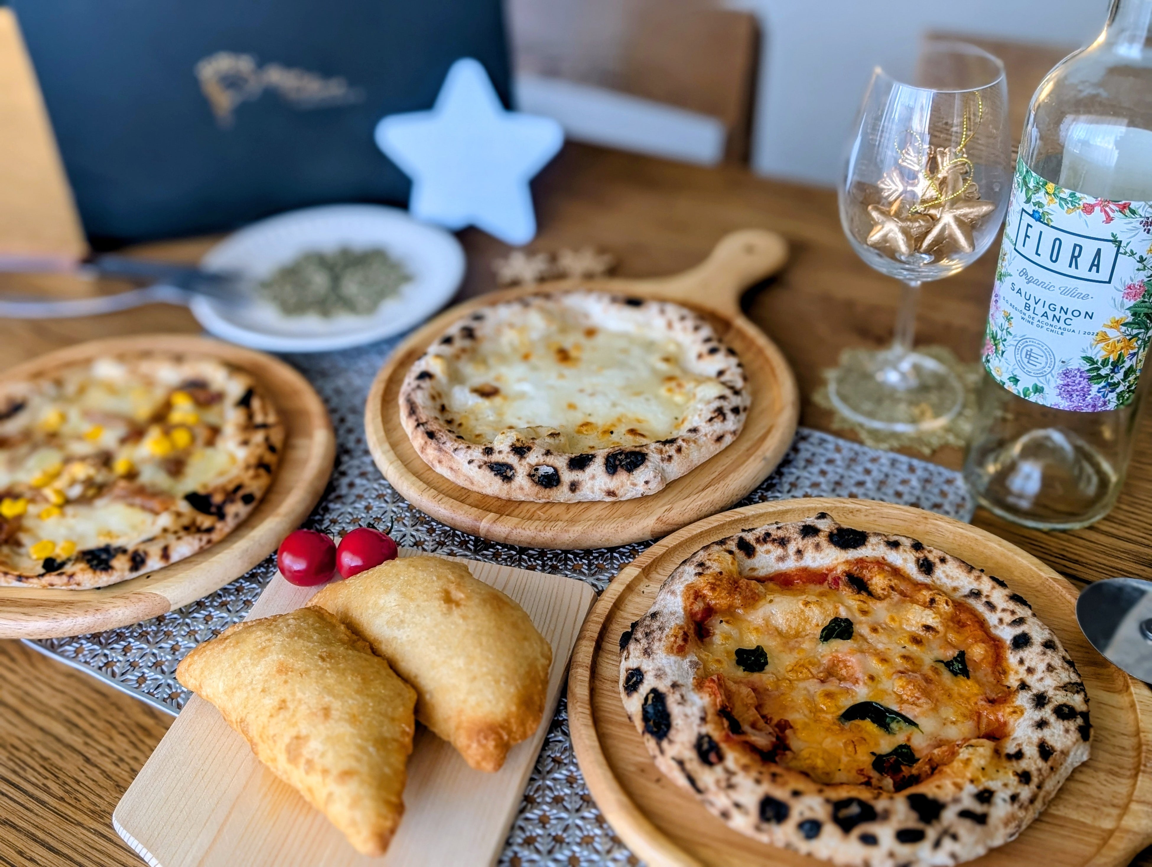 セット内容:■石窯ピザ3枚(マルゲリータ×1・チーズたっぷりピザ×1・てりやきチキンピザ×1)■揚げピザ2個(マルゲリータ×1・てりやきチキン×1)■選べる特典カード: 星形“congratulation”カード or 合格祈願だるま お守り型カード
