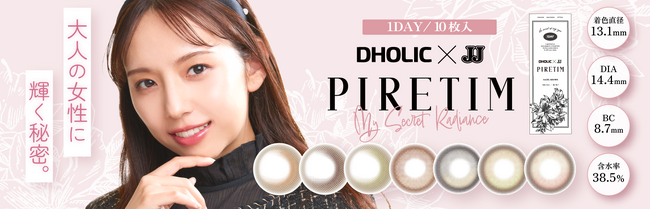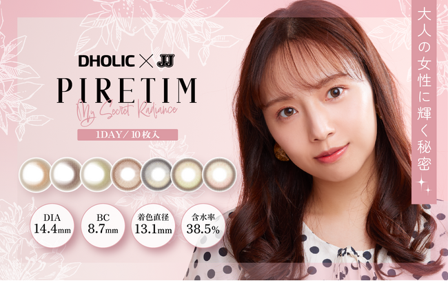 『PIRETIM』は、「私が輝く秘密」をコンセプトに『DHOLIC』が立ち上げた大人向けカラコンブランド。ファッション界を長年リードしてきた女性ファッションメディア『JJ』とコラボし、幅広い年代、特に大人の女性が自然に盛れるカラコンを楽しんでもらいたいという想いのもと制作。幅広い女性の声をリサーチした結果、「不自然にならず、程よく盛れるカラコン」が誕生しました。