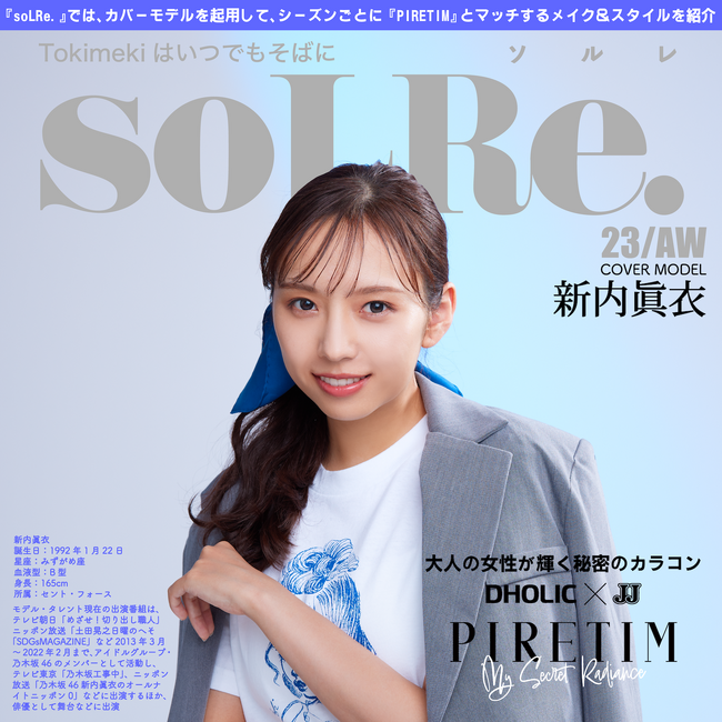 果実株式会社『soLRe.』では女性ファッションメディア『JJ』と連動して、『PIRETIM』を生かしたカラコンメイク&スタイルをシーズンごとに紹介。2023A/Wカバーモデルは元乃木坂46新内眞衣さん