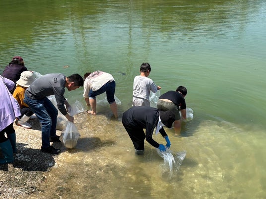 今年の稚エビの池入れには、子どもたちや地域の高齢者の方々にも参加していただきました。自然と共に生きるこの地域で、たくさんの笑顔に出会えたことが、何よりの原動力です。