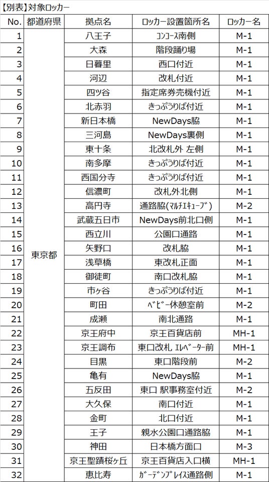 (3) 対象ロッカー 多機能ロッカー「マルチエキューブ」 ※設置場所などの詳細は別表参照