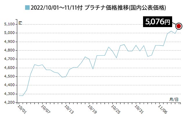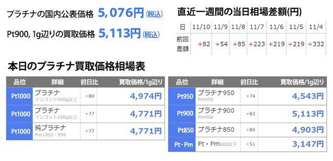 11/11(金) プラチナ1g辺りの国内公表価格がコロナショック以降の最高値となる5,076円まで上昇。池袋の買取店リファスタでも店頭買取依頼・問い合わせが殺到しております。