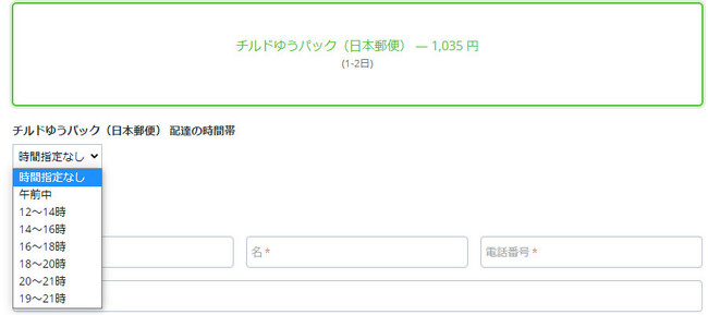 ユーザー側の配送時間帯設定画面と設定時間は以下の通り。