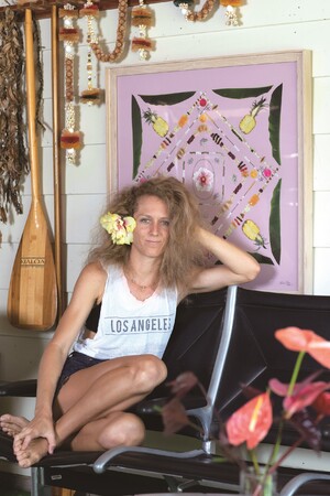 スティーブン・キーンさん ペンシルバニア州出身で、オアフ島ノースショア在住の版画アーティストのスティーブン・キーンさん。木彫りした木版画で波やハワイの景色などを表現しています。スティーブンさんは、2017年ノースショアで毎年秋に開催されるバンズ・ワールド・カップ・オブ・サーフィンの公式アーティストとして選ばれ、2019年にはOlukaiとのコラボレーションで、プレミアムレザーサンダル「Honoli’i」のフットベッドのデザインを行いました。また、2021年カハラに新しくオープンしたKAHALA MKT. by Foodlandのビジュアルにも起用されるなど、注目を集めています。さらに、スティーブンさんは、アーティスト活動以外にハワイ州立文化芸術財団の教育アーティストやハワイ州立美術館でプログラム講師をされるなど、幅広く活躍されています。