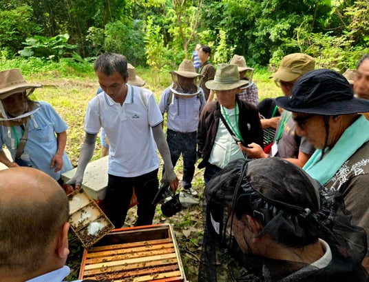 2024年10月、「日台養蜂技術交流会」に参加した日本の養蜂家50名が、東亜園の台湾養蜂場を訪れ、現地の養蜂技術を見学しました。
