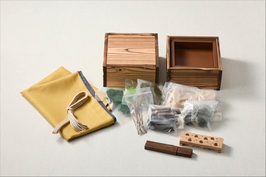 体験して楽しめる、飾って楽しめる箱庭「玉手箱」主に訪日外国人の方へ、日本の素晴らしさと日本ならではの和の素材の素晴らしさを体験し、知っていただきたいという思いから開発した箱庭。自由な発想で作る箱庭は、つくる楽しさ、飾る楽しさ両方を味わっていただけます。サステナブルな素材をふんだんに使った箱庭を、玉手箱風に仕上げました。体験プログラムや、日本訪問の思い出の品としてご提案いたします。