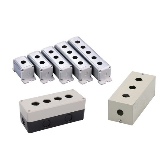 スイッチ・ブザー・表示灯φ16・φ22のスイッチ、ブザー、表示灯をラインナップしています。 5色以上のカラーバリエーションと、5種類の接点構成から選択可能です。 形状は平形・突出形・大形を用意しており、防護等級IP65に対応しているため、防塵・防水用途にも適しています。