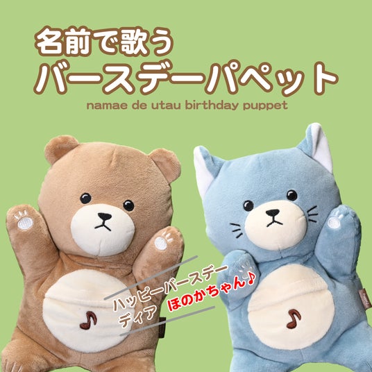 名前で歌うバースデーパペット クマ(左) ネコ(右)