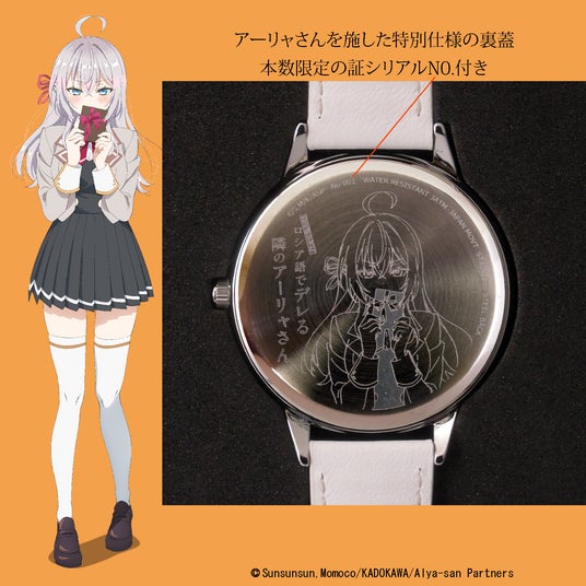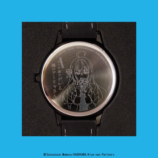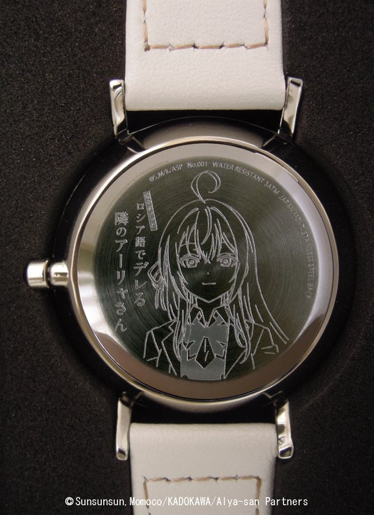 株式会社BlueSUNアーリャさんをイメージしたデザイン&配色で、作中に登場したセリフ(ロシア語)を盤面に施し、アーリャさんの姿を施した特別仕様の裏蓋が最大の魅力!