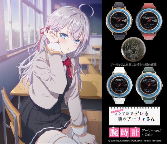 TVアニメ『時々ボソッとロシア語でデレる隣のアーリャさん』の腕時計 【ver.1(4種類 / 各30本限定 / シリアルナンバー入り)】と【ver.2(3種類 / 各30本限定 / シリアルナンバー入り)】の2モデル(全7種類)が登場。アニメコラボ腕時計専門公式通販ショップBlueBlueTOKYOにて予約受付を開始いたしました!(発売元:株式会社BlueSUN)
