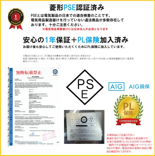 (4)安心の菱形PSEマーク認証済み・PL保険加入済み