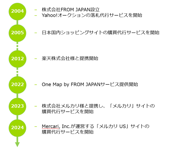 ■FROM JAPANとは「国や地域にとらわれないショッピング体験を世界規模で可能にする」ことをミッションとして立ち上げられた会社です。2004年創業時以来、日本の商品を世界へお送りするためのビジネスを行ってまいりました。2022年11月にはサービス名称が「FROM JAPAN」から「One Map by FROM JAPAN」へと進化。日本に加え米国の商品も世界中のお客様にお届けするべく邁進しています。