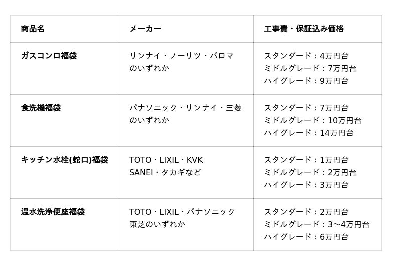 食洗機・ガスコンロ・キッチン水栓・温水洗浄便座の福袋を発売いたしました。
