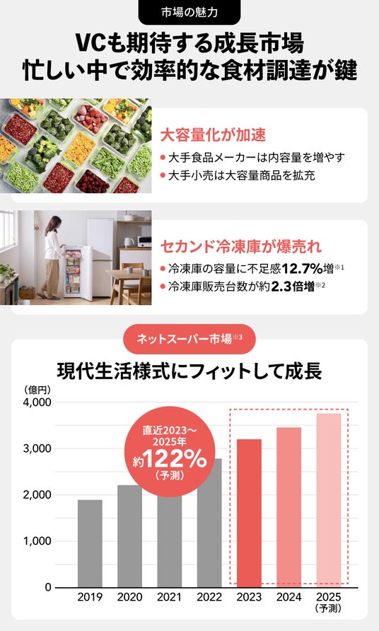 ※1 出典:家電販売大手H社調査(2022年)/ ※2 出典:大手家電メーカーA社の2020年から2021年の販売台数/ ※3 出典:富士経済
