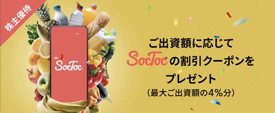 なお、お申込み頂いた株主様への優待としてSocTocで取り扱う約1,000点のコストコ商品の購入に充当頂けて、株主様限定で全国どこでも配送対応するSocTocクーポンをご提供致します。(※2)