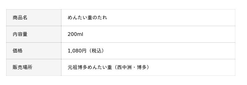 元祖博多めんたい重株式会社は、多くのお客様より再販のご要望をいただいておりました、おみやげ商品「めんたい重のたれ」を復刻し、現在好評発売中です。