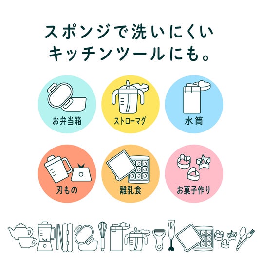 細かなところが洗いづらいお菓子づくりの道具や時短を叶える便利グッズにも、スプレーだから泡がスキマにしっかり入り込み、汚れを落とします。