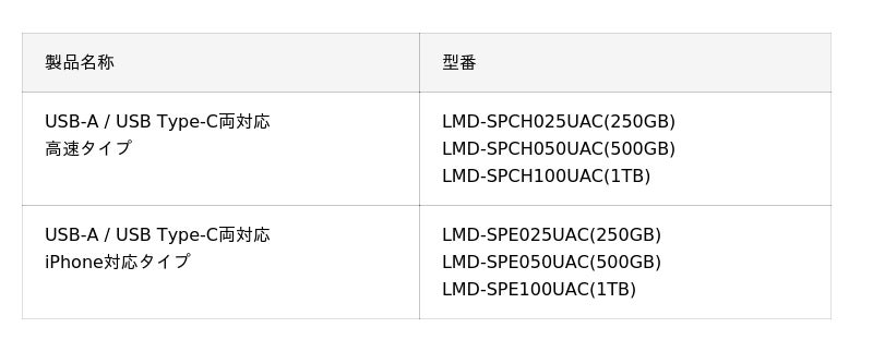 iPhone・PC・Macなど、あらゆるデバイスと互換性のあるUSB Type-A/C対応モデルをラインナップ。大容量かつ高速転送で、写真や動画データの管理もスマートに。