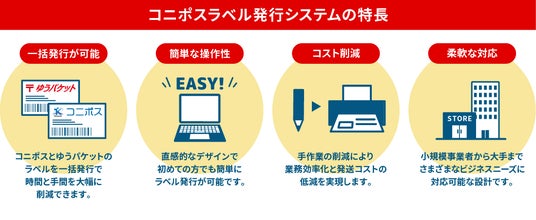 コニポスラベル発行システムについて「コニポスラベル発行システム」は、コニポスとゆうパケットのラベルを一元管理できる画期的なシステムです。