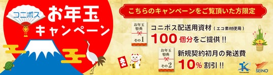 こちらのキャンペーンをご覧いただき、新規契約されたお客様を対象に、コニポス配送用資材100個分を無償提供 。 さらに初月の発送費を10%割引!