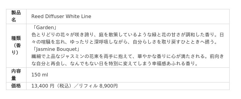 リードディフューザー〈ホワイトライン〉Gardenの香り