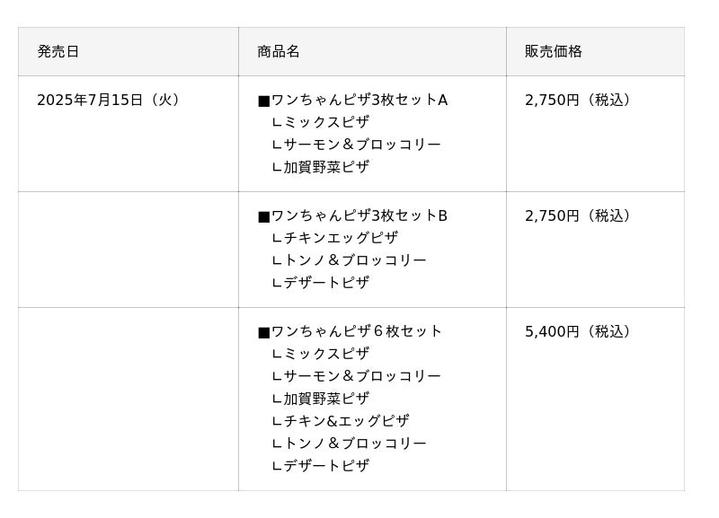 株式会社リエイ石川県金沢市にて、冷凍ピザの製造・販売を行う株式会社森山ナポリ(以下、モリナポ)は、愛犬と一緒に美味しいピザを楽しんでいただくことをコンセプトとした「ワンちゃんピザ」を、2025年7月15日(火)より販売開始いたします。