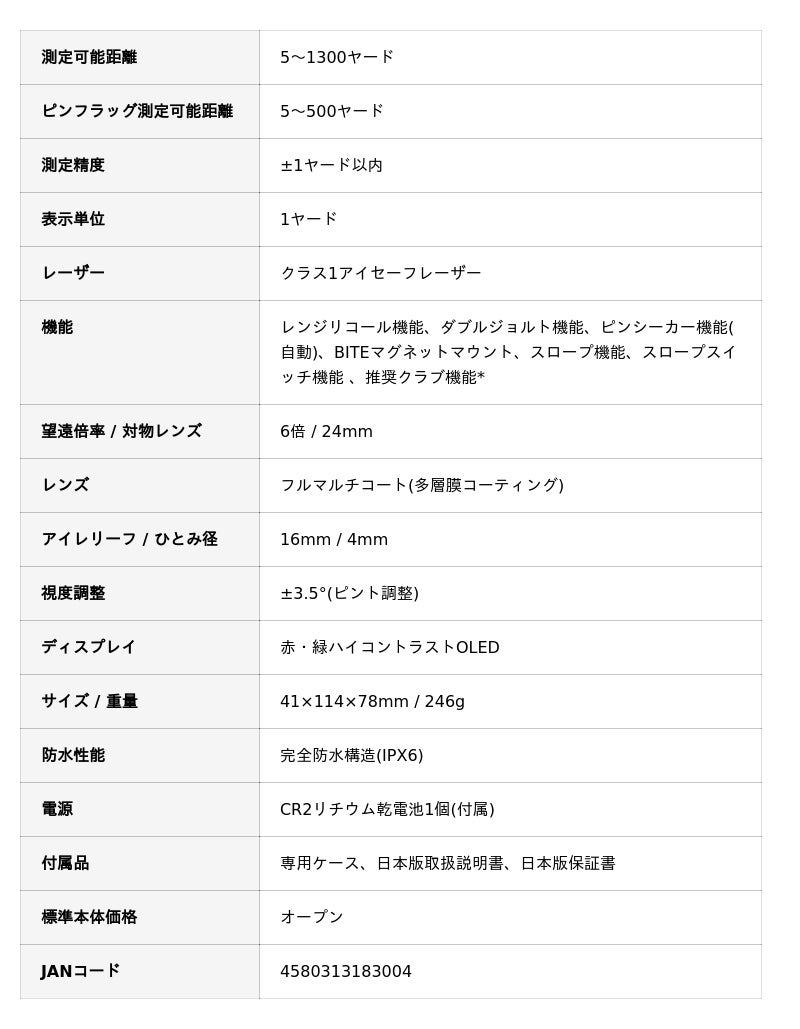商品詳細ページゴルフ用距離計ブランド「ブッシュネルゴルフ」とはブッシュネルゴルフは米国を拠点とする双眼鏡、トレイルカメラ、暗視スコープなどの光学機器を展開する「ブッシュネル」が開発したゴルフ用距離計ブランドです。米国だけでなく、ヨーロッパ、アジアなどグローバルに展開しており、その測定精度や耐久性の高さから、PGAツアープロの愛用率は96.8%、日本国内でも多くのプロ、アマチュアゴルファーから支持を頂いております。