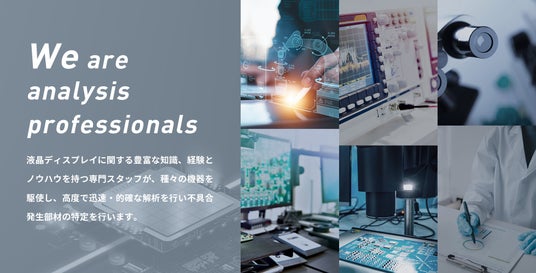 製品の不具合箇所を特定する解析サービスをご提供しています。20年以上の実績や液晶取り扱いの経験があるスタッフがご相談から承りますので、ぜひお気軽にお問い合わせください。
