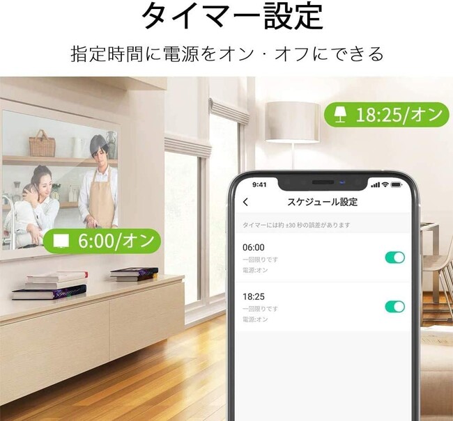 自分の生活習慣に合わせて、電源オン/オフのスケジュールやタイマー設定が可能。
